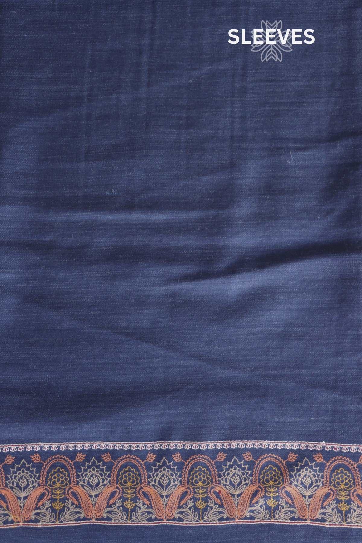 Blue suit, crafted in rich fine wool fabric, features delicate Sozni embroidery on the shirt and sleeves, bringing alive the traditional elegance and cultural essence of Kashmir. The plain woolen bottom complements the design, maintaining a refined and balanced look.