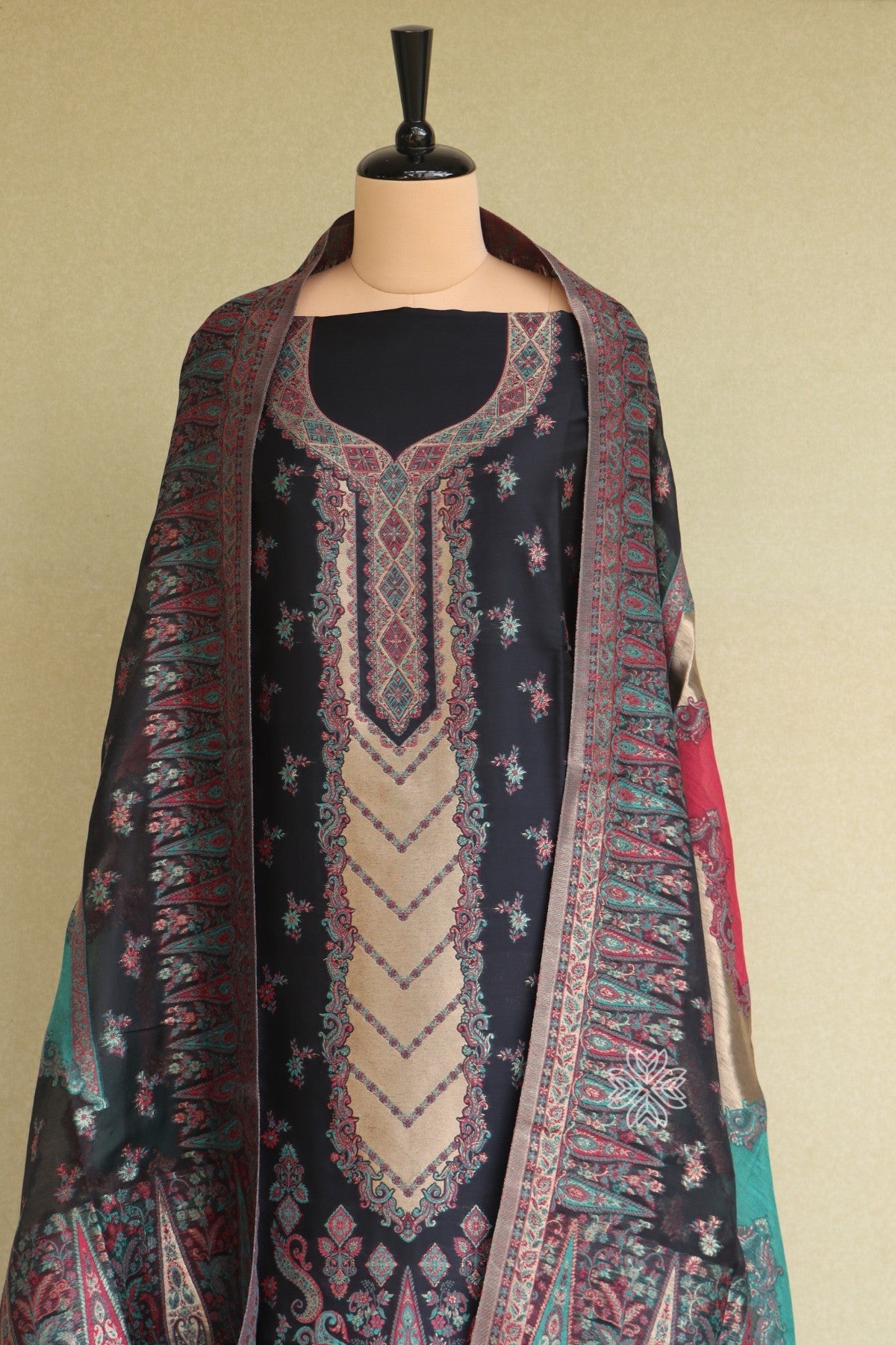 Midnight Blue Kani Silk Suit with Zari DupattaMidnight Blue Kani Silk Suit with Zari Dupatta