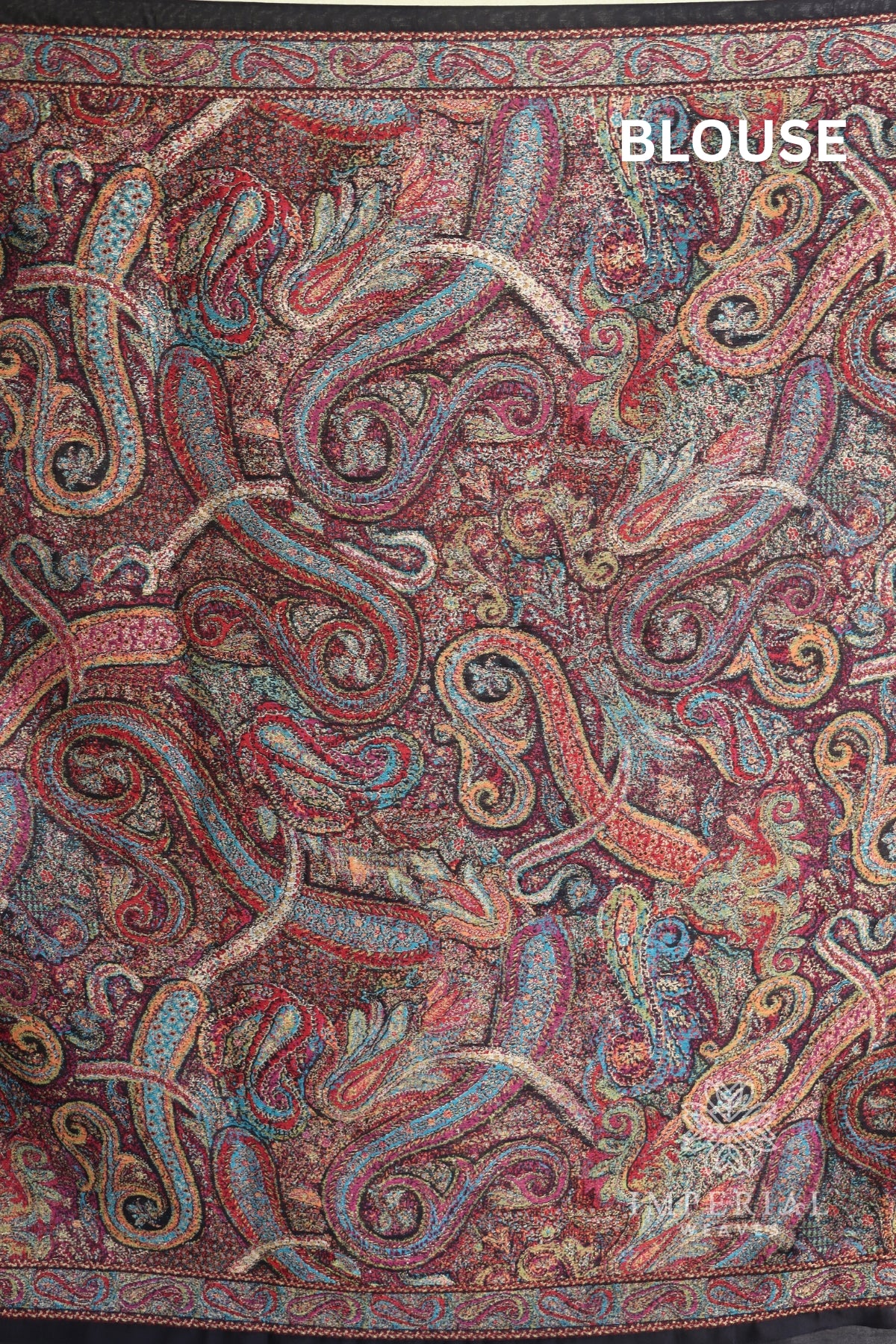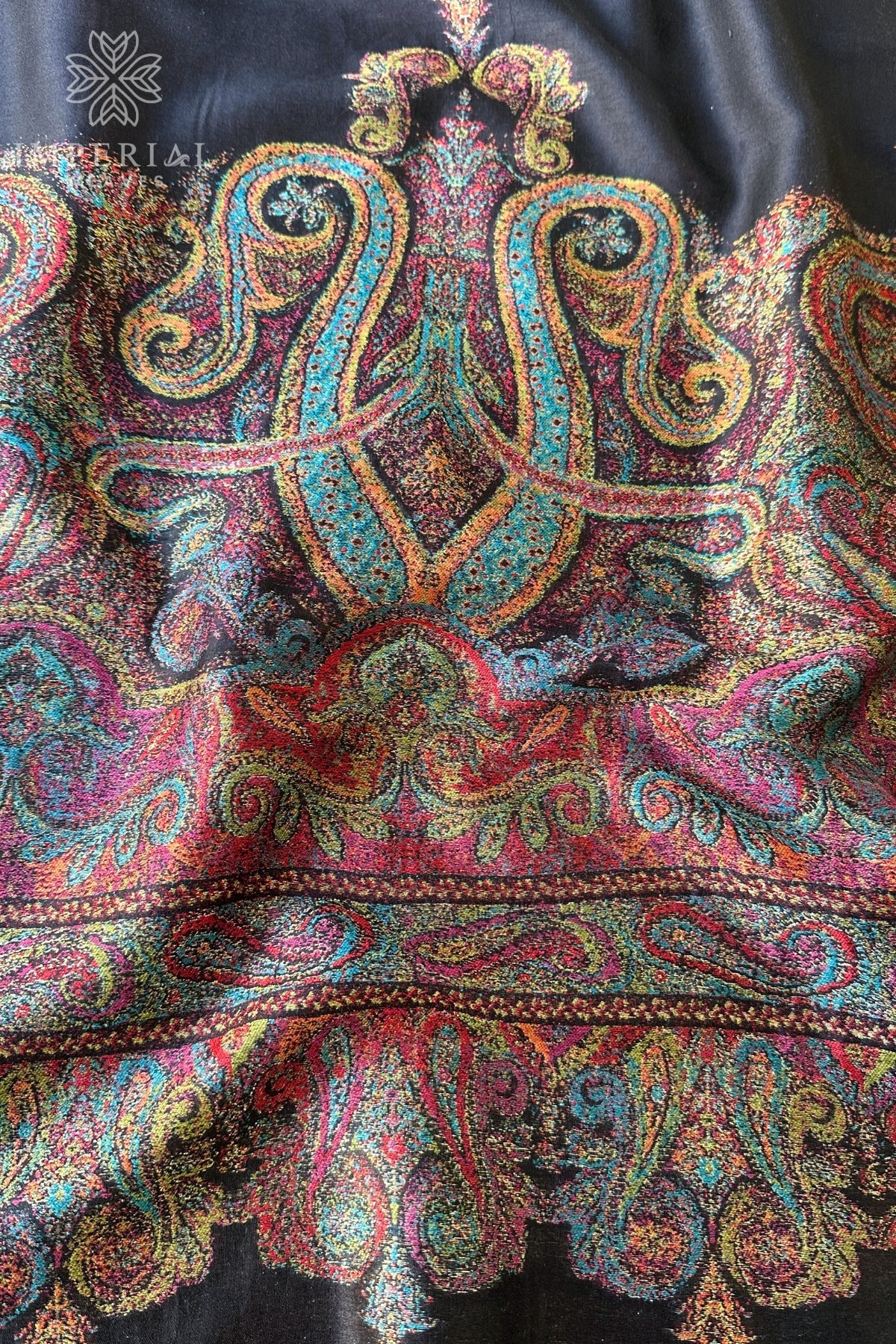 This exquisite Black Kani Antique Jamawar Silk Saree in classic black embodies the richness ofĀ Kani Jamawar weaving with an antique finish that exudes timeless elegance. The saree features intricate woven floral and paisley motifs, reflecting the heritage of Kashmiri craftsmanship. The antique gold and muted tones woven into the design add depth and sophistication, creating a perfect balance of tradition and luxury.